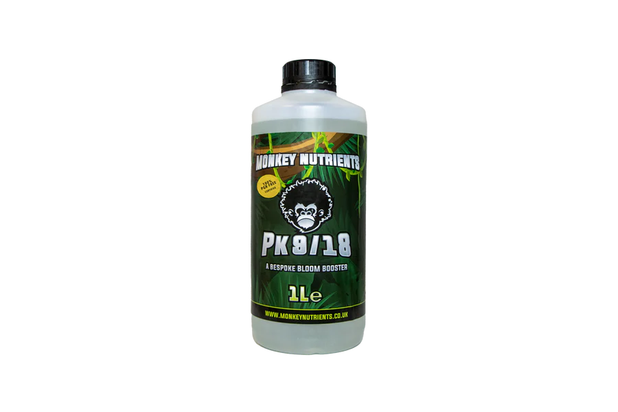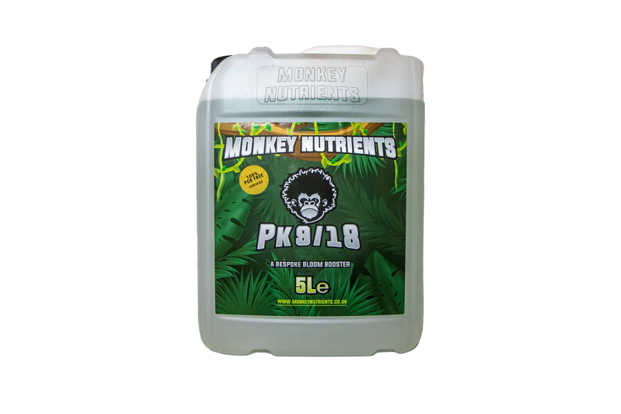 Monkey Nutrients PK 9-18 is a specialized flowering and fruiting stimulant formulated to support plants during their reproductive stages. With a phosphorus-to-potassium ratio of 9-18, this nutrient booster promotes robust flower development, enhanced fruit set, and improved yields. The elevated potassium content strengthens cell walls and enhances nutrient translocation, while phosphorus drives energy production and bud formation. Ideal for use during flowering and fruiting phases, PK 9-18 complements your base nutrient programme to maximize flowering potential and crop quality.