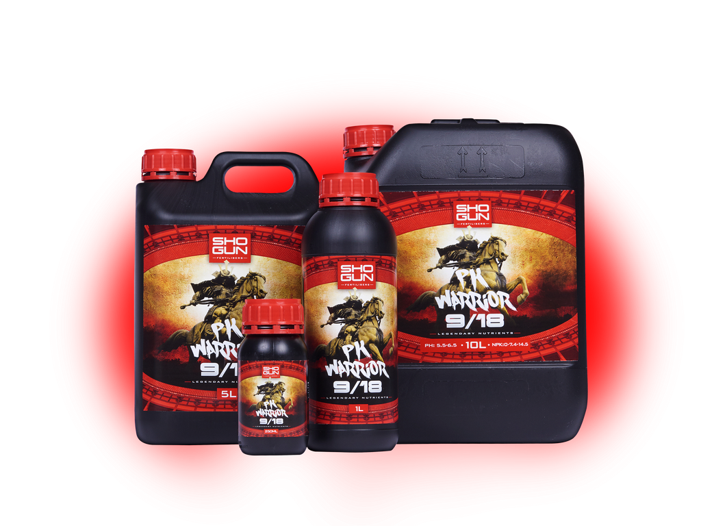 Shogun PK Warrior 9/18 is a concentrated phosphorus and potassium additive used during flowering when plants naturally shift focus from building structure to building blooms. It’s made for the period when demand increases and you want to support strong, consistent flower development without changing your whole base feed.